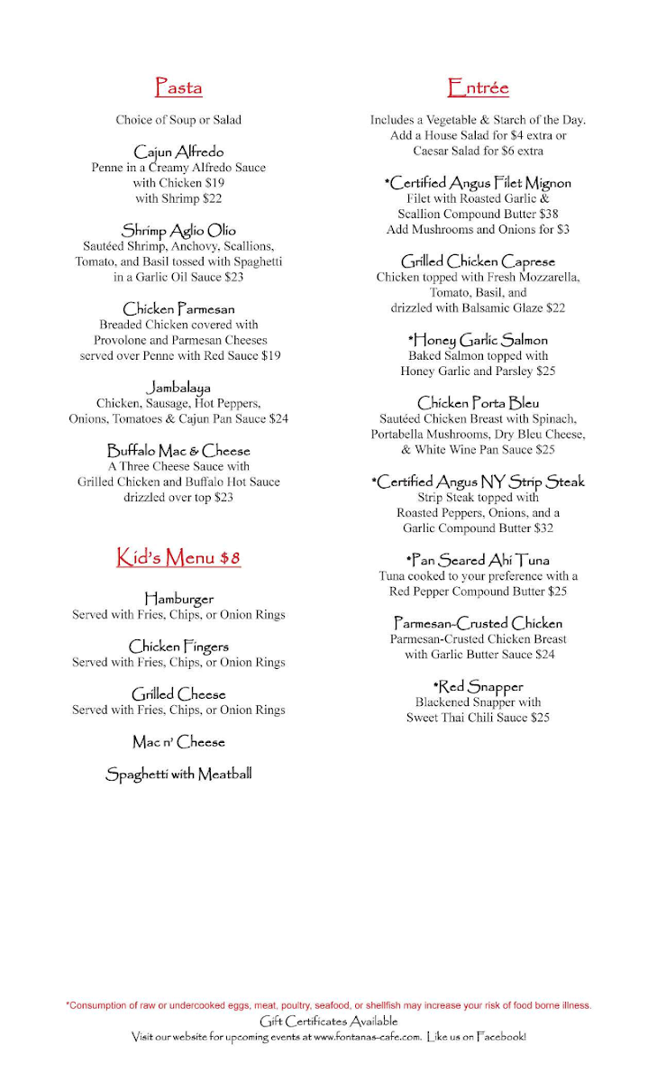 Customer reviews highlight the flavorful dishes and attentive service, making Fontana's Cafe a local favorite. Whether it’s a casual dinner or a celebration, each visit guarantees a memorable dining experience.